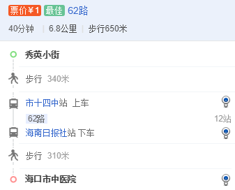 从秀英小街步行到市十四中站,乘62路车到海南日报社下车,步行到海口市中医院,大概需38分钟