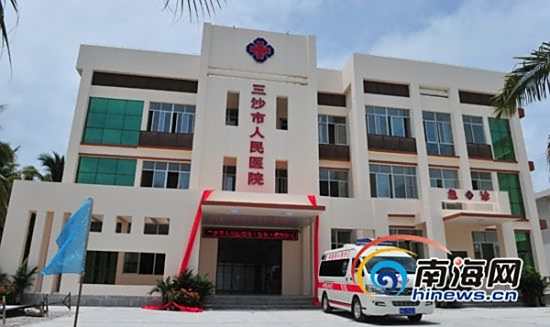 三沙市人民医院,位于海南省三沙市西沙永兴岛主干道北京路上,其前身为西沙人民医院,最早成立于1959年3月。医院现有门诊楼和住院楼各一幢,建筑面积2338平方米,设有儿科、外科、妇产科、心电超声科、重压氧科(拟配高压氧舱,渔民“潜水病”的紧急救治)、远程会诊等科室,配有病床30张,医护人员编制35人,可满足三沙市驻岛军警民及游客的医疗卫生服务条件、基本医疗需求。