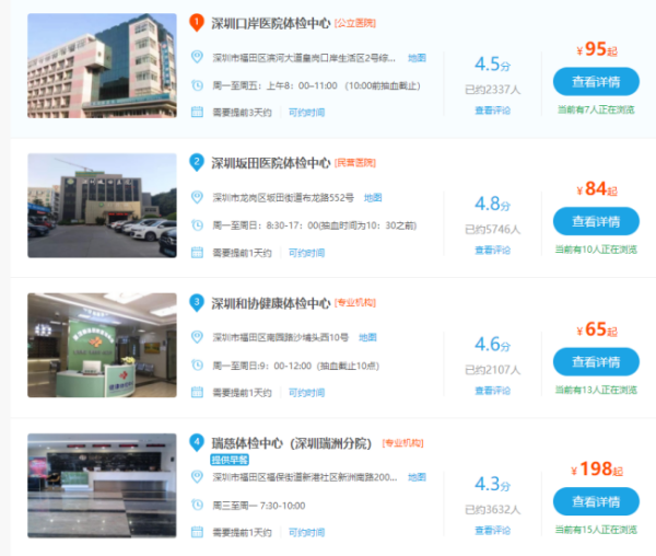 除了1.深圳口岸医院2.深圳坂田医院3.深圳市健安医院4.深圳市出入境边防检查总站医院等公立医院外,还有一些民营医院和机构可以上中康体检网上查看他们各自的套餐价格