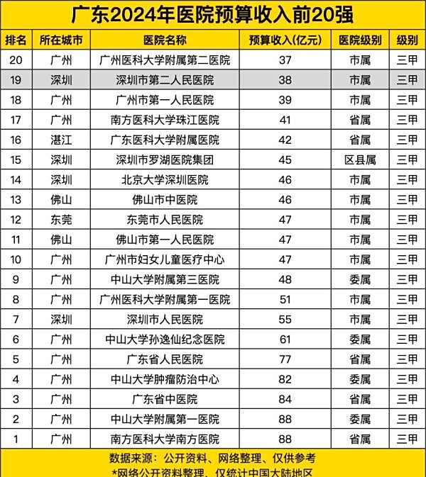 从上述排名中可以看出,广州地区的医院在预算收入上占据了明显的优势,这与其作为广东省的省会城市和医疗中心地位密不可分。同时,也反映出广东省在医疗资源分配上存在一定的地域差异,非珠三角地区的医疗资源相对较为匮乏。