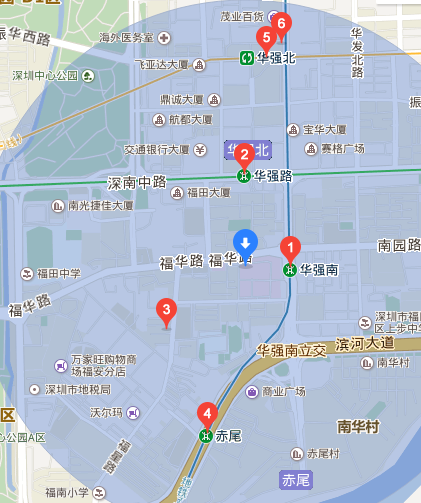 1、从华强北乘坐地铁7号线,经过1站, 到达华强南站