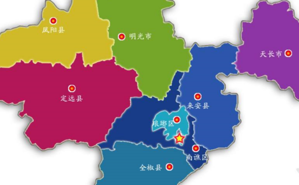 下辖行政区:琅琊区,南谯区,天长市,明光市,全椒县,来安县,凤阳县,定远县。