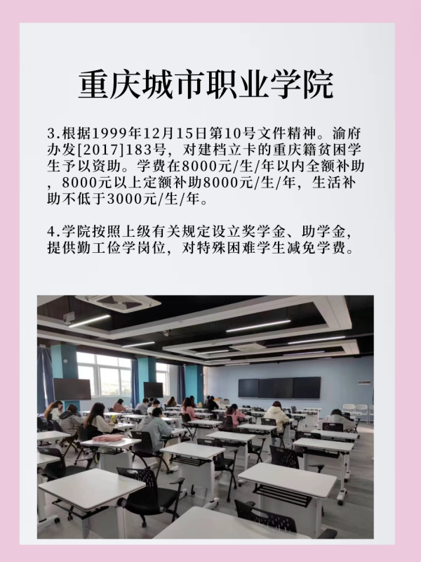 3.根据1999年12月15日第10号文件精神。渝府办发[2017]183号,对建档立卡的重庆籍贫困学生予以资助。学费在8000元/生/年以内全额补助,8000元以上定额补助8000元/生/年,生活补助不低于3000元/生/年。
