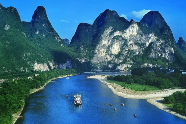 小学语文课本上有一篇文章《桂林山水甲天下》,就是指漓江。漓江两岸是桂林风光的精华。“百里漓江,百里画廊”,每一个场景都是一幅典型的中国水墨画,漓江景区青峰夹岸,绿水盈盈,峡谷绝壁,悬泉瀑布,绿洲险滩,奇洞美石,风光万千,沿江分布着几十个知名景点。