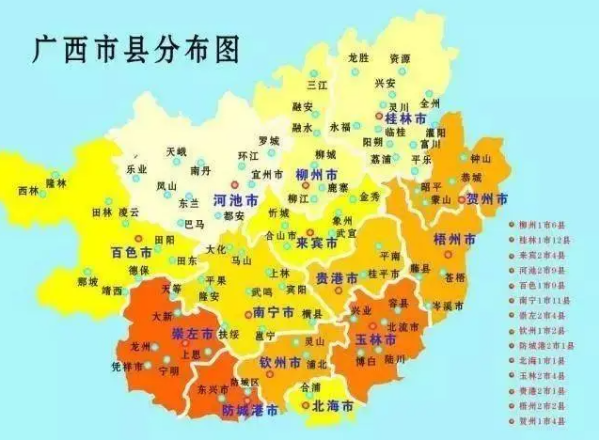 广西共60个县(不是75个)名称分别是:
