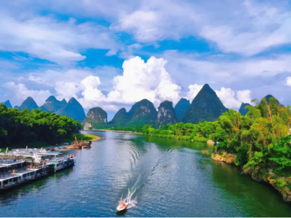 漓江,是以流域孕育的独特绝世而又秀甲天下的自然景观——桂林山水的精华所在,拥有丰富的自然山水景观,主要景点概括为一江(漓江)、两洞(芦笛岩、七星岩)、三山(独秀峰、伏波山、叠彩山)。