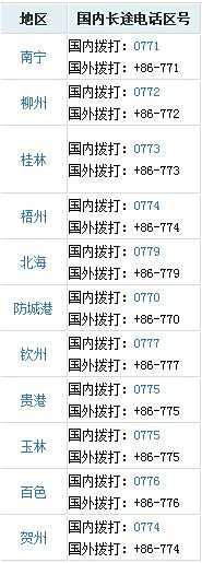广西的区号是0770~0779。