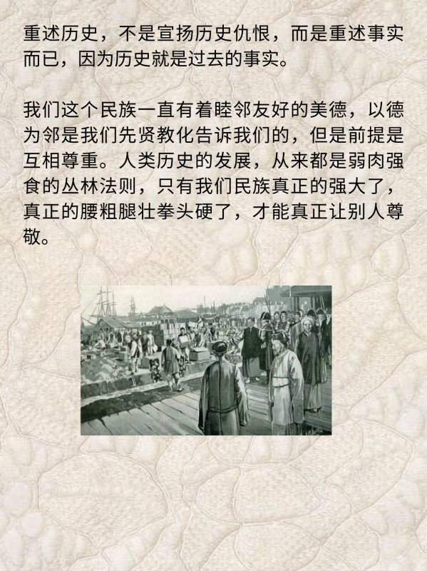 人类历史的发展,从来都是弱肉强食的丛林法则,只有我们民族真正的强大了,真正的腰粗腿壮拳头硬了,才能真正让别人尊敬。