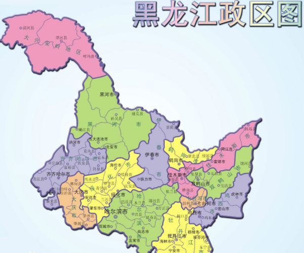 截至2018年2月,黑龙江省共辖12个地级市、1个地区行署;有63个县(市),其中县级市19个。