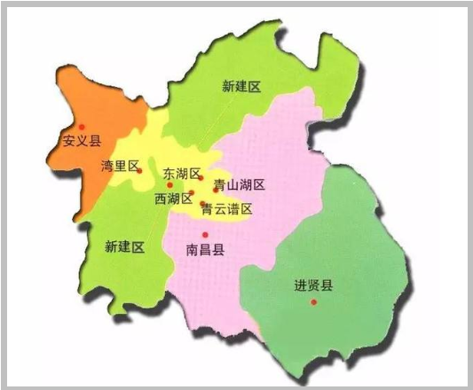 截至2019年12月,南昌市辖六个区(东湖区、西湖区、青云谱区、青山湖区、新建区、红谷滩区)、三个县(南昌县、进贤县、安义县)。