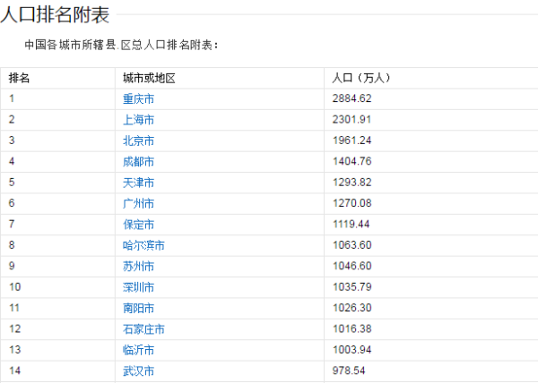 百度百科-中国城市人口排名表