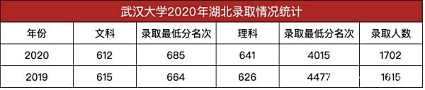 第三,武汉大学和华中科技大学省内招生人数多,相对其他省份录取分数线没那么高,湖北考生报考的话,录取几率大。比如武汉大学2020年湖北文科录取分数线为612分,理科录取分数线为641分;华中科技大学2020年湖北文科录取分数线为601分,湖北理科录取分数线为644分,比其他省份录取分数线都低。