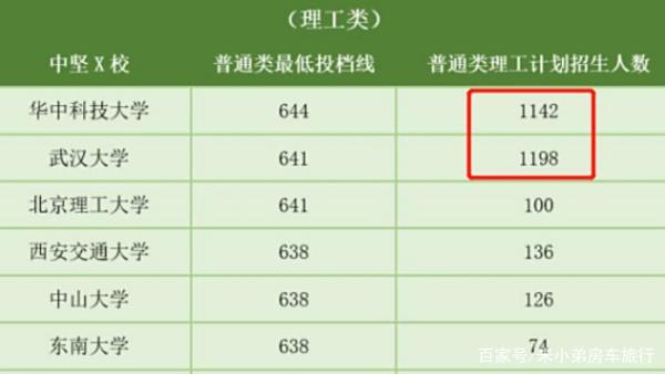 这次两所该校在省内理科一档的招生的最低投档分数线也揭晓了,华中科大最低是644分,武大是641。取最低的641分,湖北省理科生能达到641分的考生一共有4051人。再来了解下这二汉分别录取了多少名这前4051的理科生,华中科大是录取了1142名理科生,武大是录取了1198名,两所院校一共录取了省内前4051的理科生人数是2340,所占的比重是57.76%,占据有一半多,剩下的还有1700人。但是这两所省内的985很好地把省内的优秀考生留住了一半,已经算是很成功了。