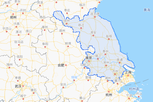 位于长江三角洲地区 ,中国大陆东部沿海,地跨北纬30°45'~35°08',东经116°21'~121°56',东临黄海,与上海市、浙江省、安徽省、山东省接壤。