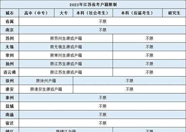 2023年江苏省公务员考试的户籍限制情况因地区而异,以下是各地市的户籍要求汇总: