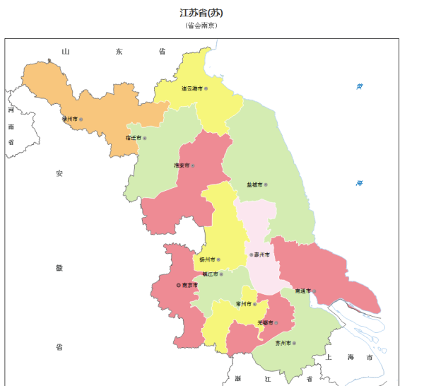 截至2017年11月底,江苏省共辖13个地级市,分别是:南京市、 无锡市、徐州市、常州市、苏州市、南通市、连云港市、淮安市、盐城市、扬州市、镇江市、泰州市、宿迁市。