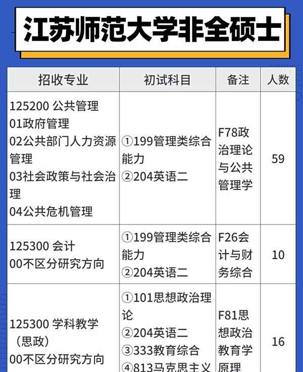 江苏师范大学2023年共有14个专业招收非全日制研究生,具体招生专业如下: