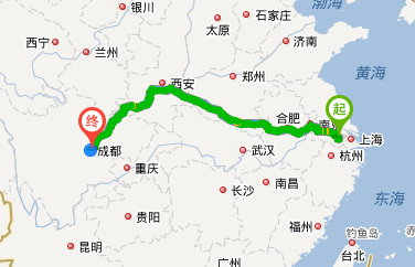 17.沿沪陕高速行驶103.0公里,直行进入沪蓉高速
