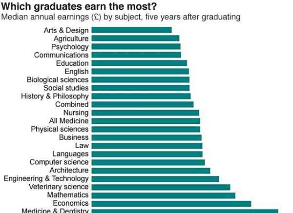 专业差异显著:不同专业之间的薪资差异也相当可观。医学和牙科专业的学生毕业后的收入大约为46,700英镑,是其他专业如艺术与设计、农业、传媒等的近2倍。而毕业5年后年薪最低的10个专业则包括历史和哲学研究、社会研究(不包括经济学)、生物科学、教育、英语、教育学、传播学(包括媒体研究、新闻和出版)、心理学、农业及相关学科、艺术与设计。