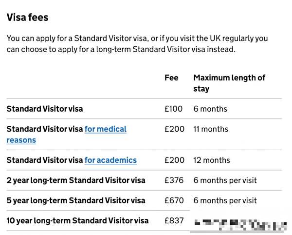 6个月有效期:约£115(适用于旅游、探亲或商务访问)