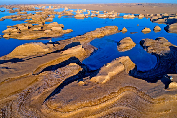 乌素特水上雅丹,是世界上唯一一处的水上雅丹地貌景观,位于海西蒙古族藏族自治州格尔木市大柴旦行委西台2号315国道处,乌素特水上雅丹,这里是航拍者的天堂,各式各样的雅丹,犹如正在向陆地进发的海上舰队,无比的震撼人心,如果游玩水上雅丹的话,最好自驾走青甘环线。