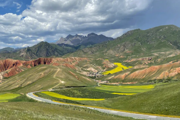 百里油菜花,这里是青海的油菜花基地,位于海北藏族自治州门源回族自治县圆山大道,这里种植了许多油菜花,形成百里油菜花景区,四周为群山;每年的7月份是门源油菜花开的季节,延近百公里,放眼望去,整个油菜花田犹如金黄色的大海一眼望不到头。