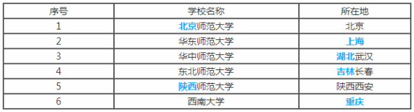 截至2018年,教育部直属的大学共有76所,其中师范类大学6所,同时也是6所国家免费师范生试点高校,以下是具体名单: