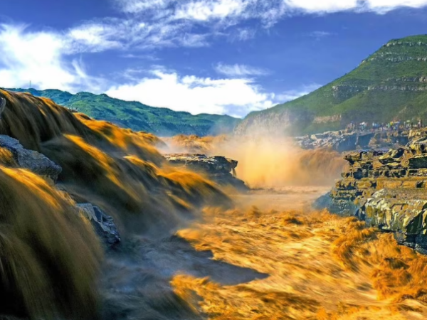 是中国第二大瀑布,也是世界上最大的黄色瀑布。壶口瀑布位于山西省临汾市吉县壶口镇,距离山西太原和陕西西安都很近。瀑布气势恢宏,水量大的夏季有巨大的瀑布,而冬季则结出冰瀑。