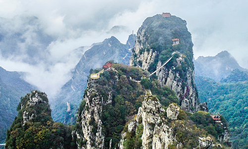 王莽岭景区,因西汉王莽赶刘秀到此地安营扎寨而得名,是新中国十大地标、国家精品红色旅游示范点。景区内的云海、日出、奇峰、松涛、挂壁公路、红岩大峡谷、立体瀑布,形成了八百里太行最著名的自然景观。