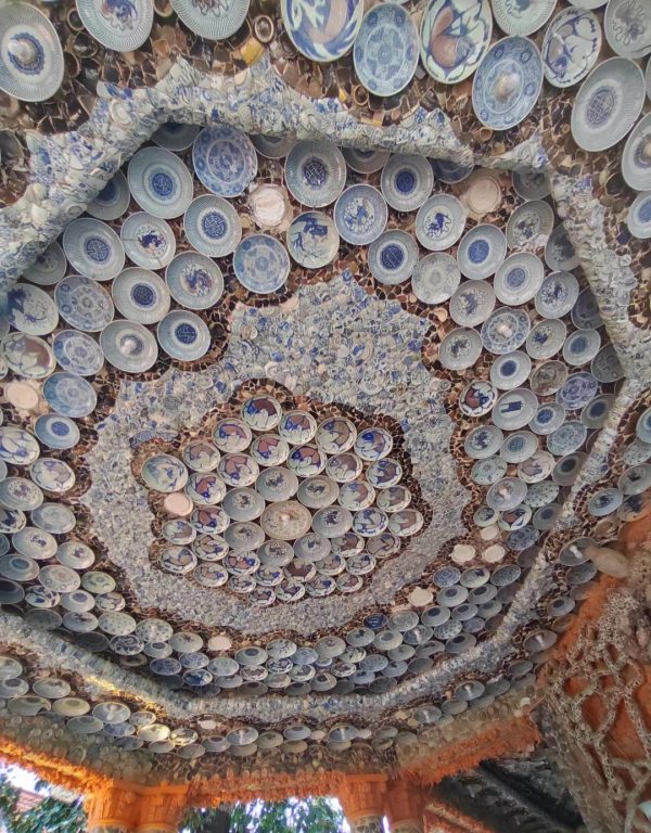 整个房子顾名思义都是瓷的,但是不是一整个,是用各种瓷器拼出来的,特别精致,真的超好看,真不敢相信住在这个房子是多么的小心翼翼,生怕碰坏了,门口还有瓷器做出来的马车和摆件,也非常好看,但是不能摸,进到房子里面,真的是晃花眼,各色花纹的瓷器,精美绝伦,我真的只能感叹,太神奇了,就连棚顶都是瓷器的,好神奇。