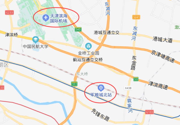 1、从天津滨海国际机场步行约800米,到达滨海国际机场站