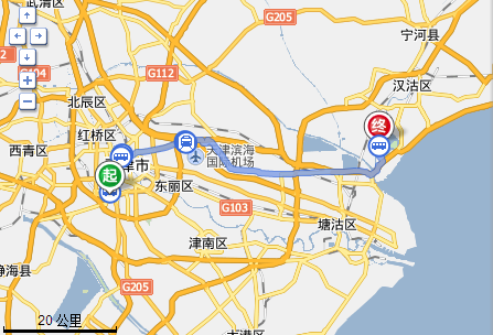 14.沿京津高速公路行驶15.3公里,在黄海路/北塘/中新生态城出口,稍向右转上匝道