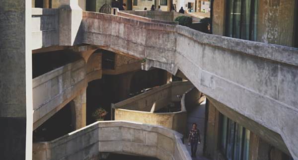整个建筑融汇了东西方特色,外方内圆的建筑结构、纵横交错的廊桥,营造出迷宫一般的效果。