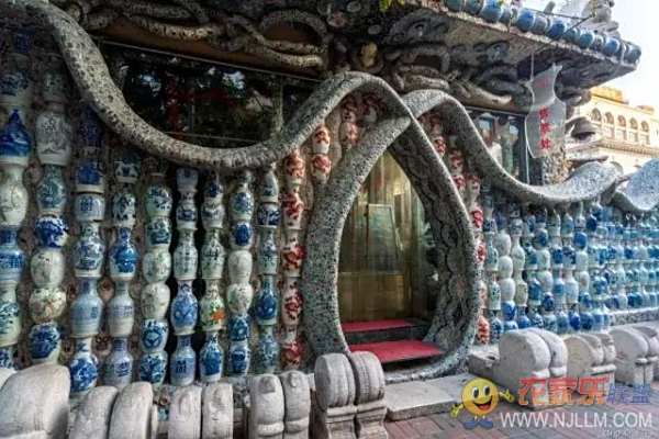 亮点:精美的中国古代瓷器密密麻麻贴满墙壁,奢华和创意程度令人惊叹!