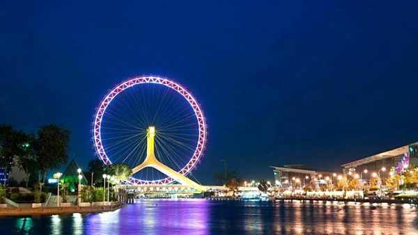 天津之眼摩天轮是天津的地标之一,是一座跨河建设、桥轮合一的摩天轮,兼具观光和交通功用,可同时供384个人观光。摩天轮到达最高处时,周边景色一览无余,甚至能看到方圆40公里以内的景致。偷偷地告诉你,摩天轮旋转一周所需时间为30分钟,也就是说,如果你带着喜欢的人去,你最少有30分钟的表白时间。