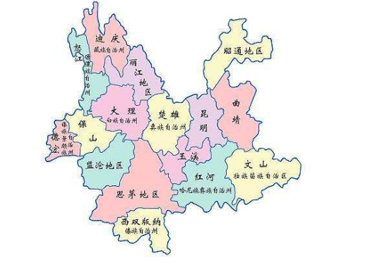 中国23个省之一,位于西南地区,省会昆明。介于北纬21°8′~29°15′,东经97°31′~106°11′之间,东部与贵州、广西为邻,北部与四川相连,西北部紧依西藏,西部与缅甸接壤,南部和老挝、越南毗邻,总面积39.41万平方千米。截止2020年12月,云南省辖8个地级市、8个自治州、17个市辖区、17个县级市、66个县、29个民族自治县(合计129个县级行政区划单位)。