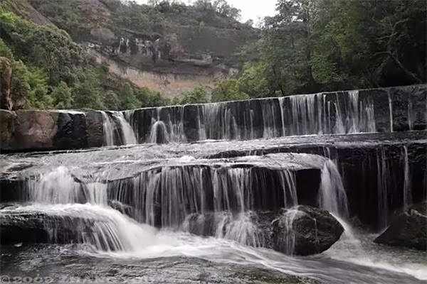 云南楚雄武定彪水崖又称、喷水崖、飙水岩,是广大驴友的胜地。距离昆明约160公里,位于掌鸠河上游,水质优良,瀑布雄浑,一道秀丽,从悬崖峭壁间倾泻而下非常壮观,山谷延绵十余里,山崖奇绝险峻,动人心魄。秀丽的丹霞地貌,红色的砂砾岩矗立在小河的两边,与青山绿水形成了鲜明的对比,如此的协调,让人无比赏心悦目。由于长年累月的流水冲蚀,那红色的砂砾岩形成了大大小小、一台接一台的瀑布,是一个戏水的绝理想去处。
