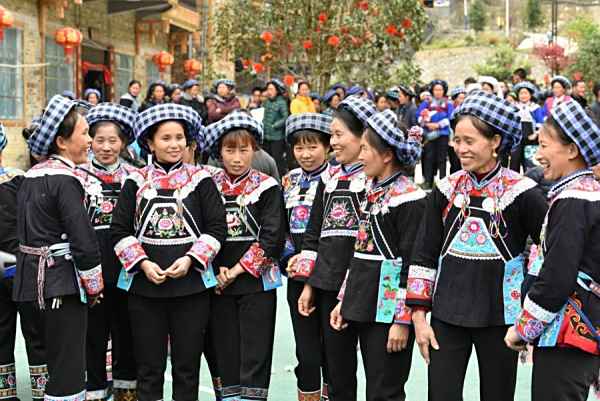 分布在贵族、云南等地,人口254万余人,主要从事农业,享有“水稻民族”之称。有自己的语言和文字。——石板屋、绣花、雕刻面具