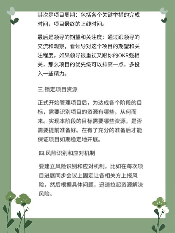 最后是领导的期望和关注度:通过跟领导的交流和观察,看领导对这个项目的期望和关注程度,如果领导很重视又跟你的0KR强相关,那么项目的优先级可以排高一点,多投入一些精力。