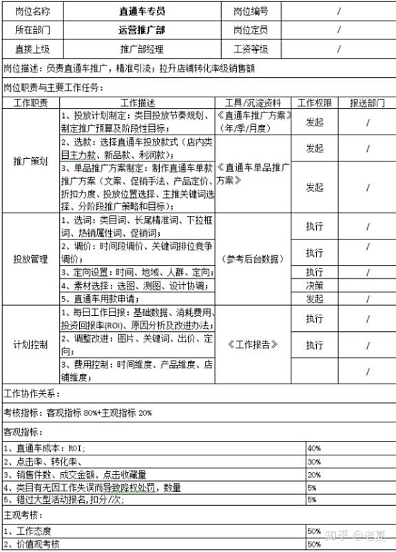 所以对淘宝岗位职责及考核指标都需要一份详细的参考资料,本文仅仅是抛砖引玉