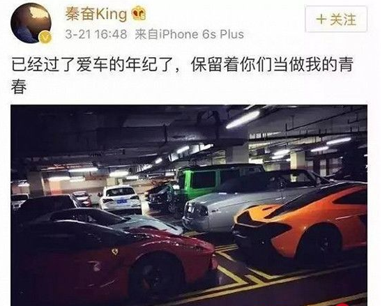 秦奋是一个超级富二代。当初王思聪说,我交朋友不在乎有钱没钱,反正都没我有钱,结果这位超级富二代秦奋就跑去问了句那我呢?王思聪也没好意思公开回应。2014年,上海保时捷918的亚洲首撞,也是这位少爷的本色出演。2015年4月28日,发生一起车祸,三千万的豪车瞬间变废铁。这台法拉利的车主叫秦奋。事故中他没有受伤,这辆法拉利修理费可能高达上千万元。