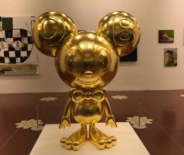 这次ART021当代艺术展现场摆放了一幅村上隆的金色雕塑,这个雕塑造型非常像米老鼠,通体都是金色的,价值1000万元左右。不少网友看到一千多万这个价格之后都表示惊呆了,可能只有像王思聪这样的有钱人才有资格花1000万买这样的艺术品吧。