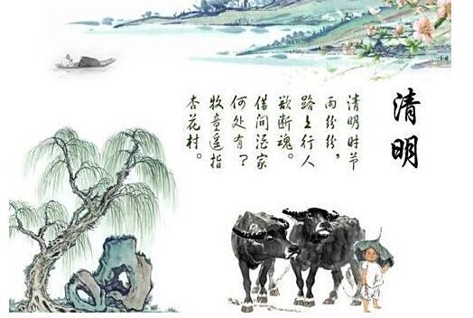 唐代诗人杜牧的诗《清明》:“清明时节雨纷纷,路上行人欲断魂。借问酒家何处有?牧童遥指杏花村。”写出了清明节的特殊气氛。