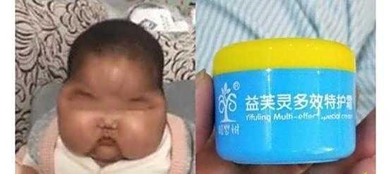 案例:2021年初,福建省漳州市一位家长表示,给女儿使用“嗳婴树”品牌的“益芙灵多效特护抑菌霜”后,5个月大的女婴变成“大头娃娃”,并有发育迟缓、多毛、脸肿大等症状。经检测,发现面霜中激素超标。