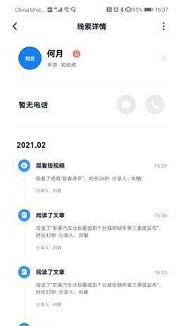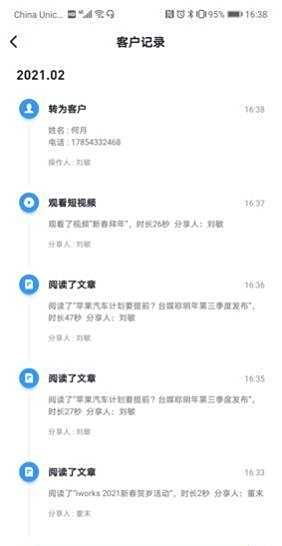 客户动向随时提醒:当有客户查阅了销售人员分享的内容时,系统会立刻弹出提醒,帮助销售人员及时跟进。