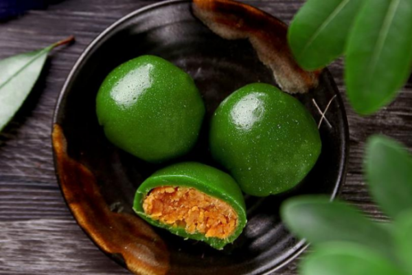 青团子 清明时节江南一带有吃青团子的风俗习惯。青团子是用一种名叫“浆麦草”的野生植物捣烂后挤压出汁,接着取用这种汁同晾干后的水磨纯糯米粉拌匀揉和,然后开始制作团子。团子的馅心是用细腻的糖豆沙制成,在包馅时,另放入一小块糖猪油。团坯制好后,将它们入笼蒸熟,出笼时用毛刷将熟菜油均匀地刷在团子的表面,这便大功告成了。