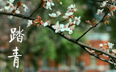 踏青。清明节,又叫踏青节,按阳历来说,它是在每年的4月4日至6日之间,正是春光明媚草木吐绿的时节,也正是人们春游(古代叫踏青)的好时候。