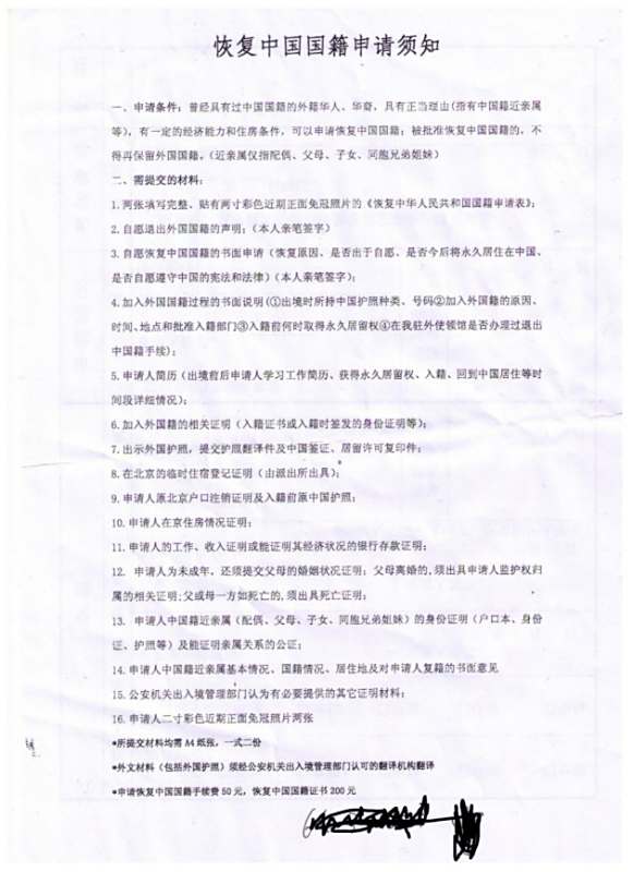 2.恢复中国国籍,手续很宽松很人性化,不会故意刁难,服务态度也非常好,非常耐心。比如:递交的材料允许涂改,有些重要材料丢失,也能通融。我的澳洲公民证书就丢失了,按“须知”要求是应该提供的,不过工作人员非常通情达理,说反正你将来也是要退澳籍的,补办之后也要作废,就别折腾了,写个声明就行了。