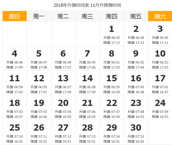 每年1月11日至6月6日,升旗时间由早晨7时36分逐渐提前到凌晨4时46分,平均每天的升旗时间一次提前约1分钟。