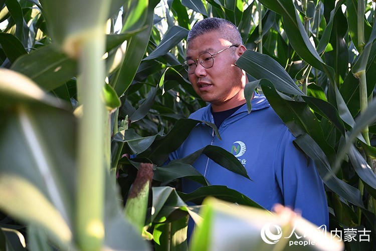 “玉米秆也不能长太高,我们基本控制在3米5以内。不然供不上营养,有倒伏的风险。”内蒙古德诺农业服务有限公司技术总监刘帅穿梭在玉米丛间,时不时摸摸玉米叶,瞅瞅玉米棒。